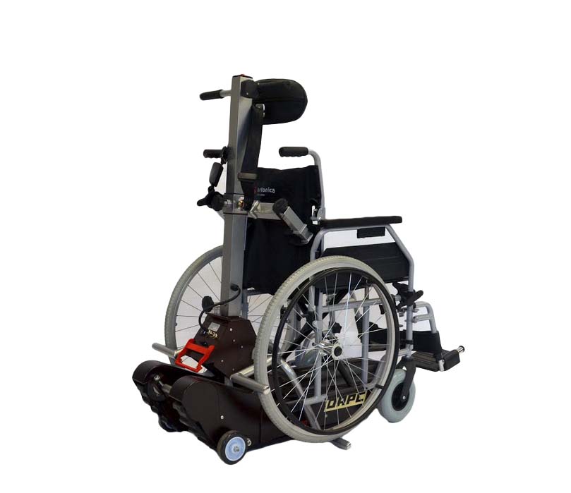 Подъемник предназначен для преодоления лестниц человеком, находящимся в кресле-коляске и при управлении сопровождающим лицом.