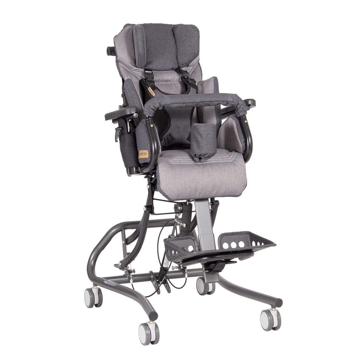 Patron FROGGO — реабилитационное кресло-коляска, предназначенное для поддержания в сидячем положении ребенка, нуждающегося в фиксации и закреплении правильного положения тела. Инновационная система подходит как для применения в домашних и повседневных условиях, так и для использования в школах, реабилитационных центрах и прочих учреждениях.