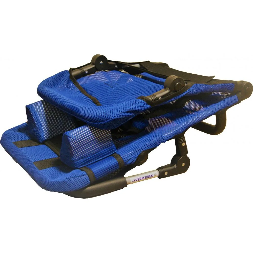 - Алюминиевая рама сиденья Vermeiren Pepi обтянута сетчатой гипоаллергенной тканью, которая хорошо пропускает воду и быстро сохнет. Натяжение ткани регулируется с помощью ремней на застежках–липучках.