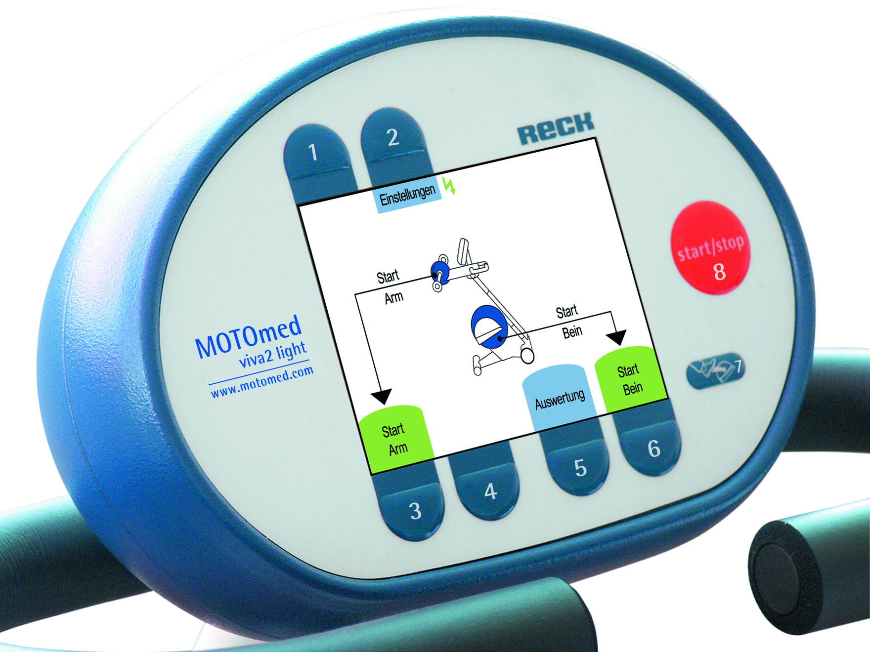Тренажеры для механотерапии МОТОмед серии VIVA2 являются наиболее удобными для использования в клиниках и реабилитационных центрах. Большой русифицированный цветной дисплей с удобными клавишами управления и индикацией текущего режима клавиш, а также возможного перехода в другой режим тренировки, позволяет медицинскому персоналу организовать тренировку наиболее эффективно и безопасно для пациента. Дисплей тренажера очень удобен для пациентов с ослабленным зрением.