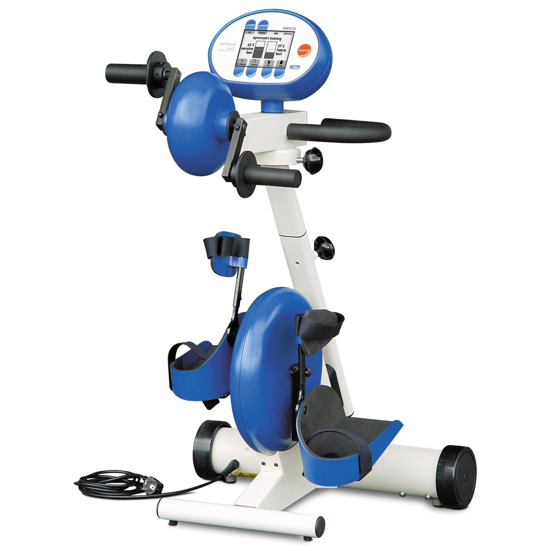 Терапевтический тренажер МОТОмед VIVA2 состоит из штатива, на котором крепятся один или два (в зависимости от модели) электромеханических блока, позволяющих выполнять вращательные движения типа педалирования нижними и верхними конечностями в пассивном и активном режимах и цветного электронного дисплея, управляющего параметрами тренировки или условиями терапевтической игры. Функции тренажера для рук полностью идентичны функциям тренажера для ног.