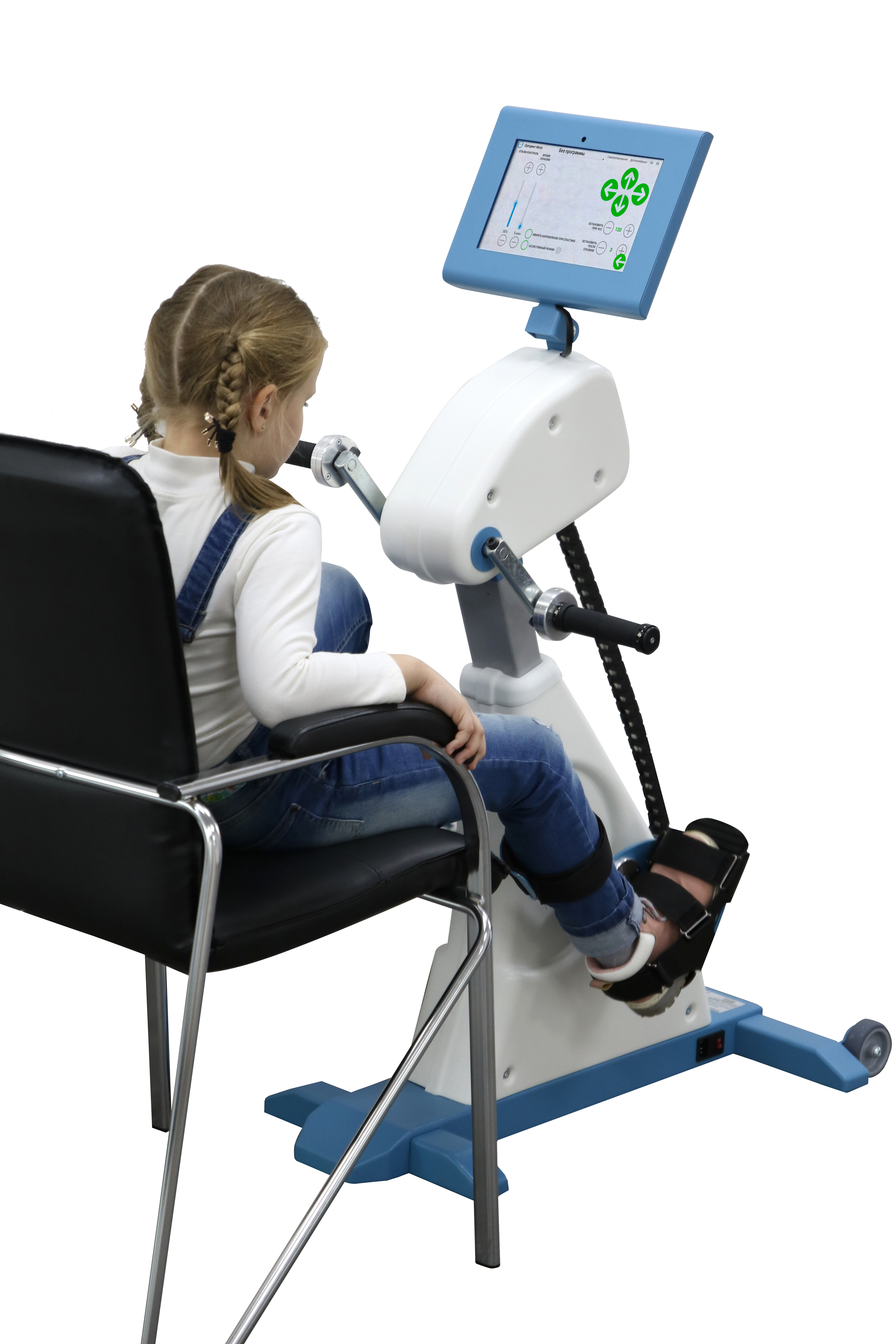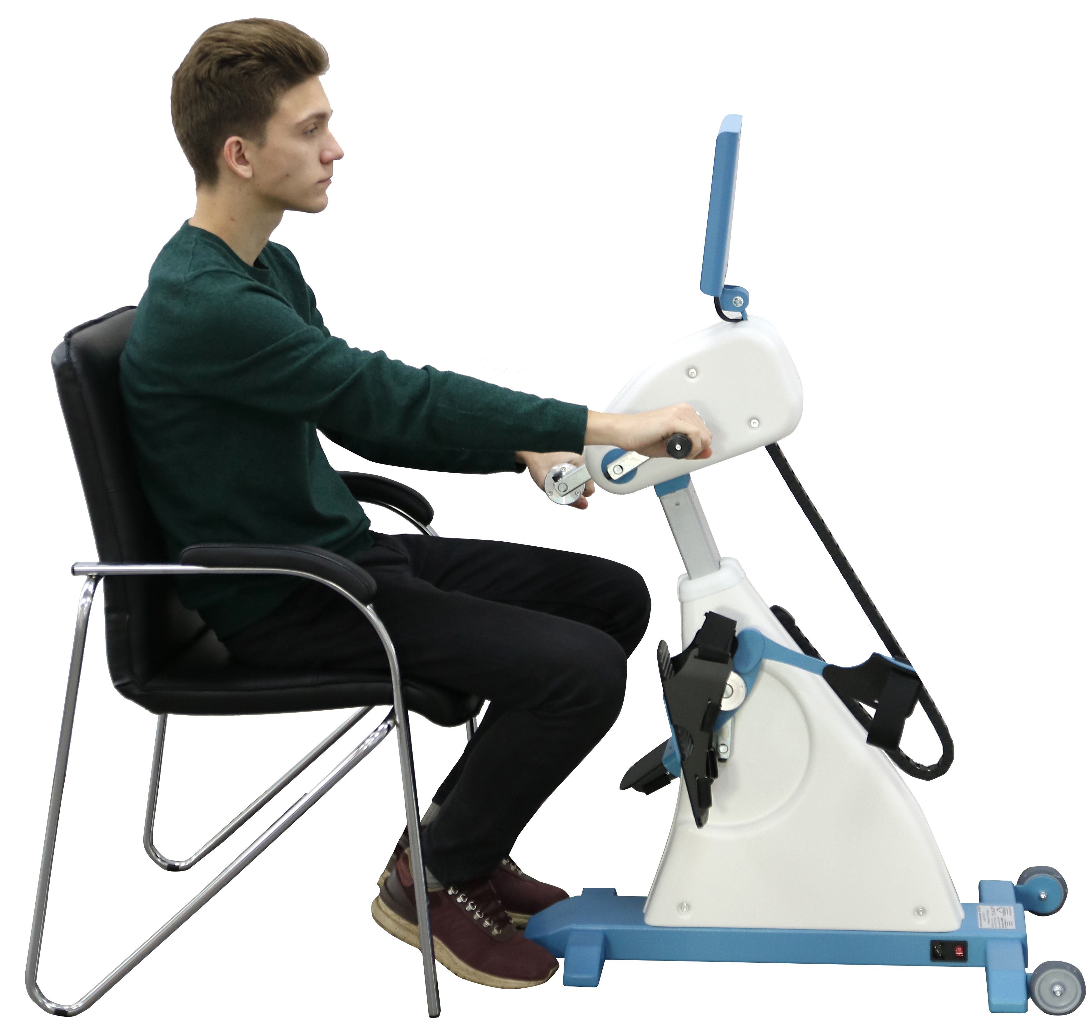 - Оснащен технологией биологической обратной связи, что позволяет производить «Спазм-контроль» - фиксировать количество спастик, а при возникновении спастики остановить тренажер и запустить вращение в обратную сторону для расслабления спастики.