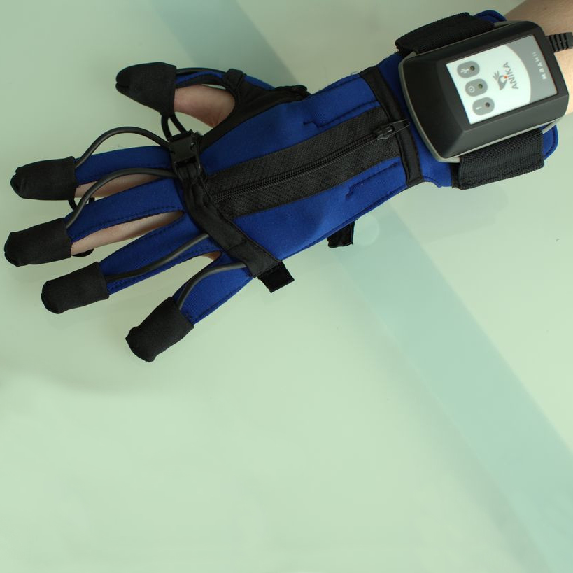 Реабилитационная перчатка «Аника» представляет из себя тренажер, способствующий восстановлению мелкой моторики и координации движений пациента. Набор из перчатки и ноутбука со специализированным ПО применяется для реабилитации пациентов с повреждениями головного и спинного мозга, перенесших инсульт, а также для восстановления моторики рук после перенесенных травм и операций. Кроме того, показанием к применению тренажера «Аника» являются такие диагнозы как ДЦП и болезнь Паркинсона.