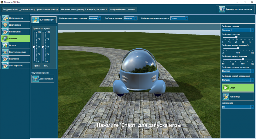 Работа на тренажере «Аника» проводится в три этапа. На первом - диагностическом - исследуется объем пассивных и активных движений пальцев, предплечья и запястья. На основе анализа полученной информации формируется программа для второго - реабилитационного этапа. На третьем этапе врач имеет возможность корректировать и контролировать лечение на основе полученных данных. Полученные результаты программа сохраняет на сервер статистики.