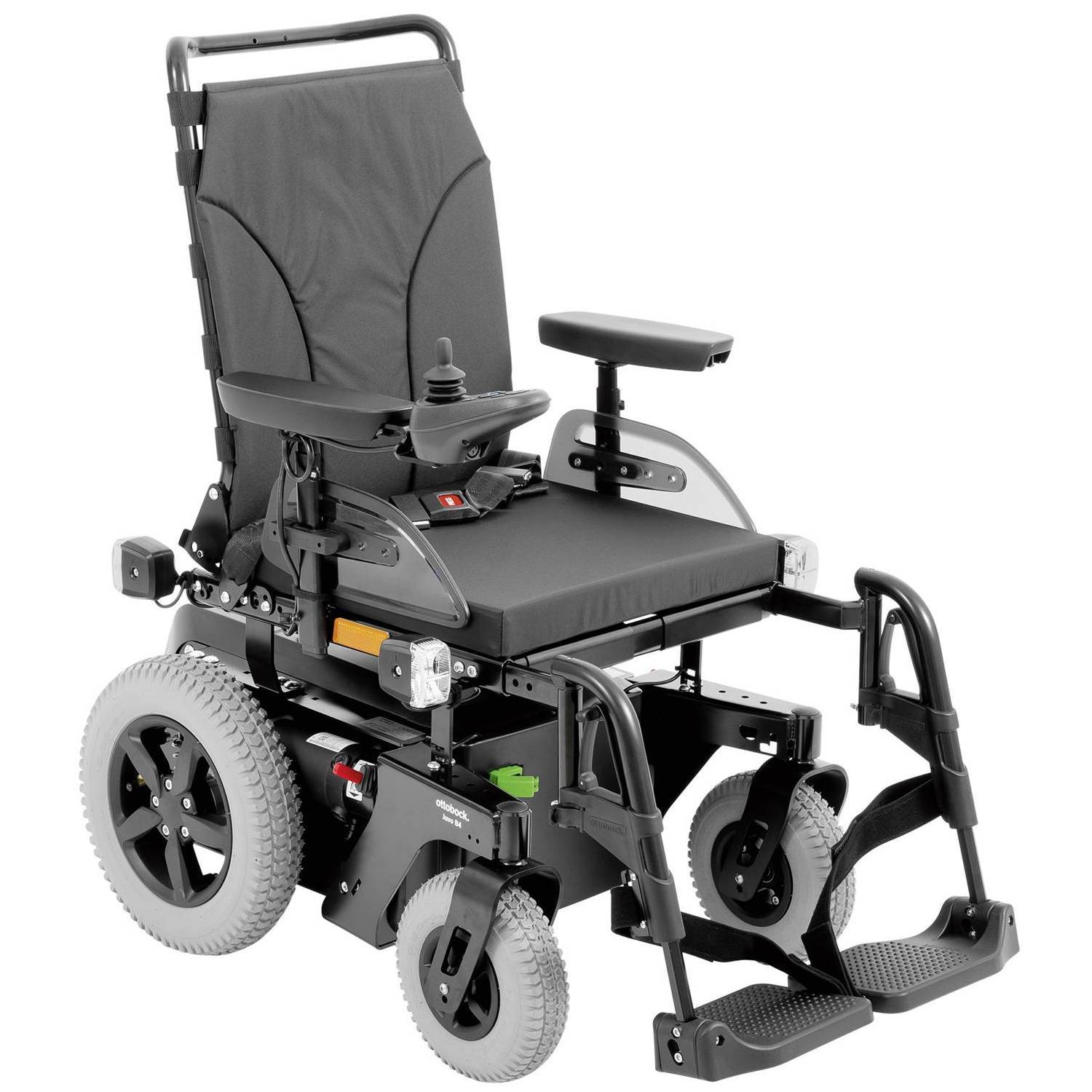 Juvo B4 - электроколяска с пультом управления и аккумуляторными батареями, обеспечивающими запас хода до 35 км со скоростью от 6 до 10 км/ч.