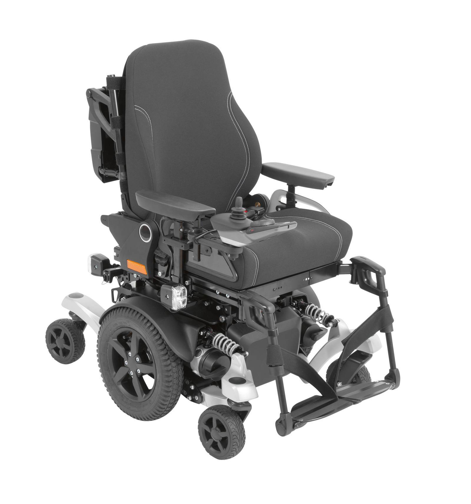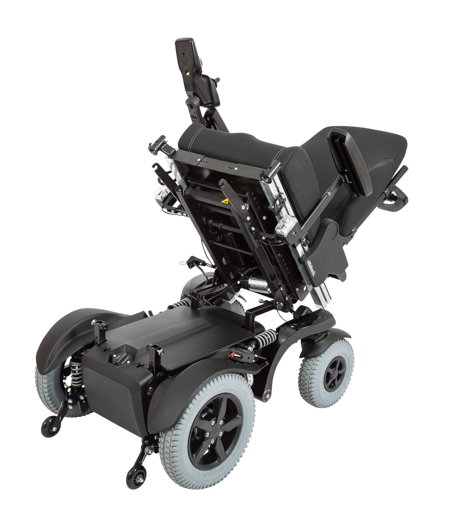 Электроколяска Juvo B6 также может быть оборудована центральным или передним приводом, механизмами для дополнительной регуляции угла наклона спинки и высоты сидения.