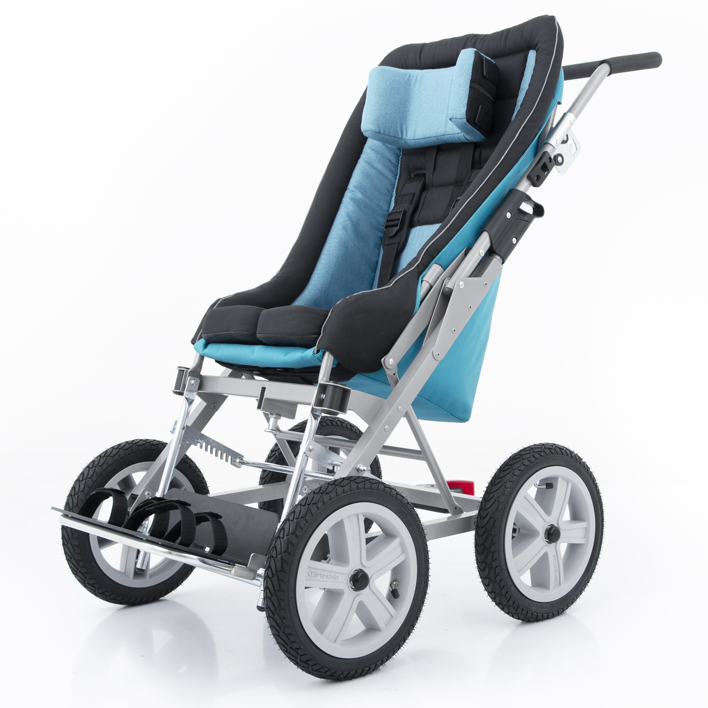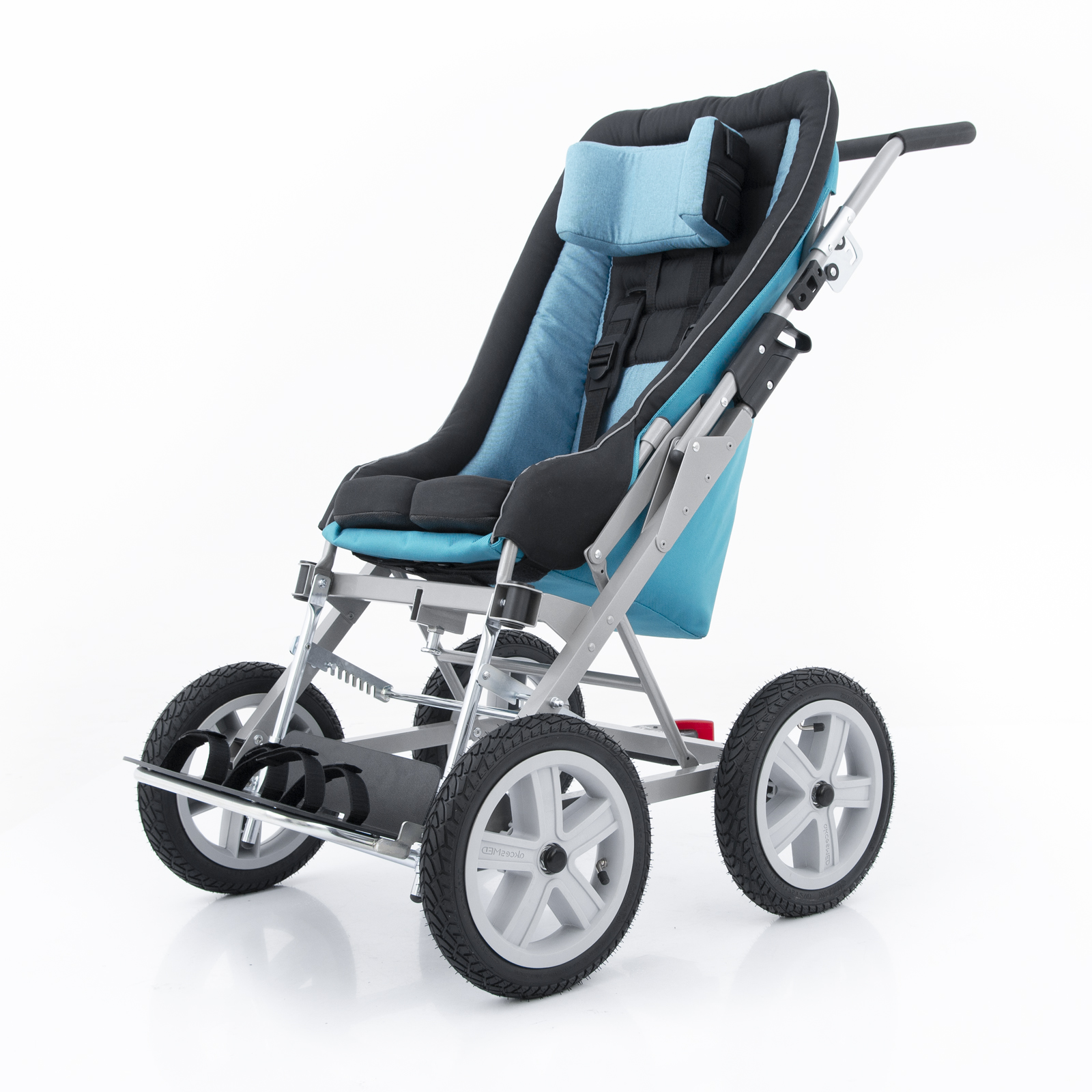 Наилучшим образом подойдет для детей со спастическими проявлениями, а также для пользователей, нуждающихся в дополнительной стабилизации. Надувные колеса обеспечивают дополнительную амортизацию устройства, что снижает неконтролируемое напряжение мышц во время движения. Смягчению спастических атак также способствует инновационная система крепления обивки TENSION, гарантирующая минимальный контакт сиденья с конструкцией коляски.