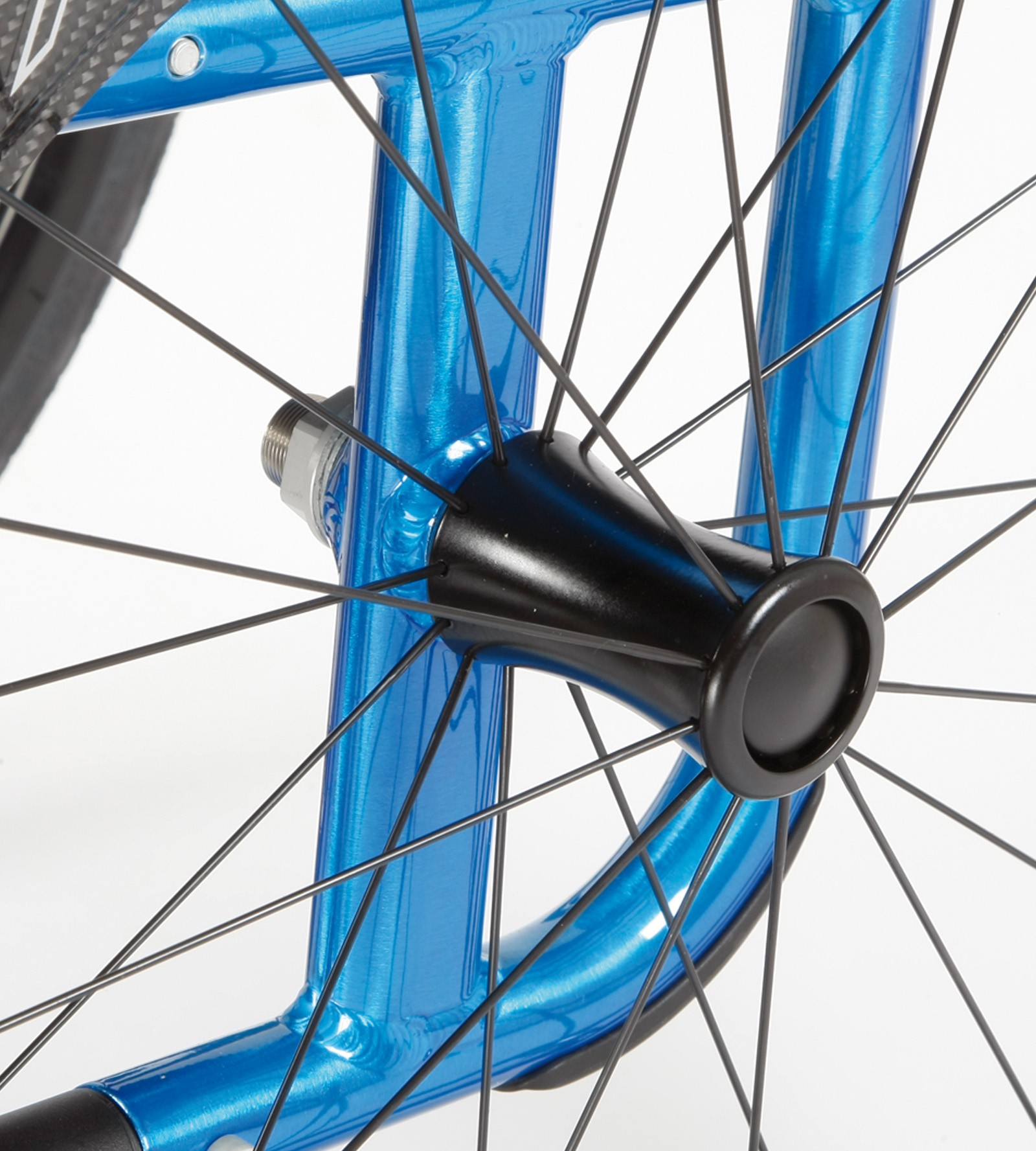 Адаптер приводного колеса обеспечивает широкие возможности настройки центра тяжести кресла-коляски, размеров колесной базы, угла наклона сиденья, развала колес.