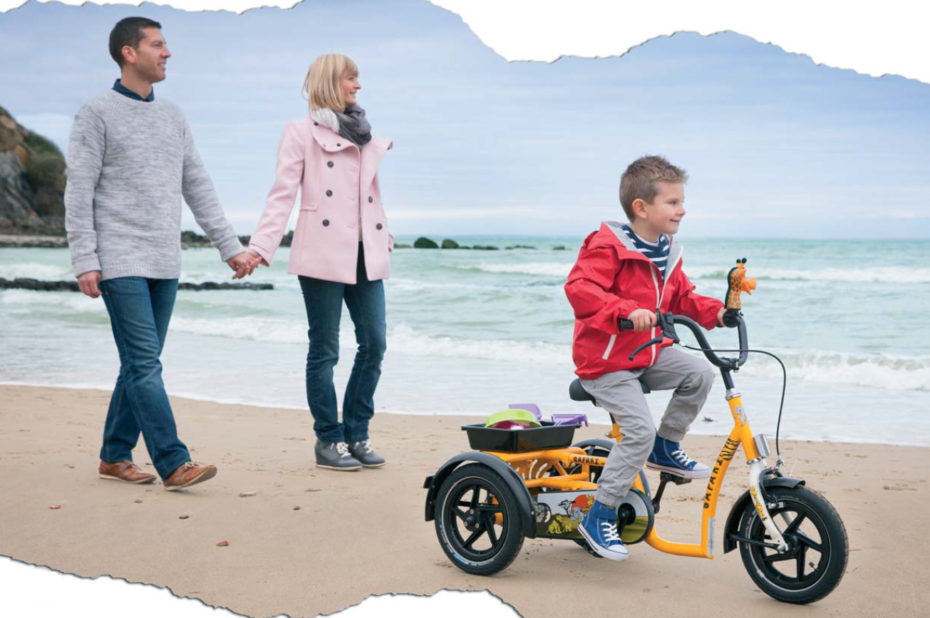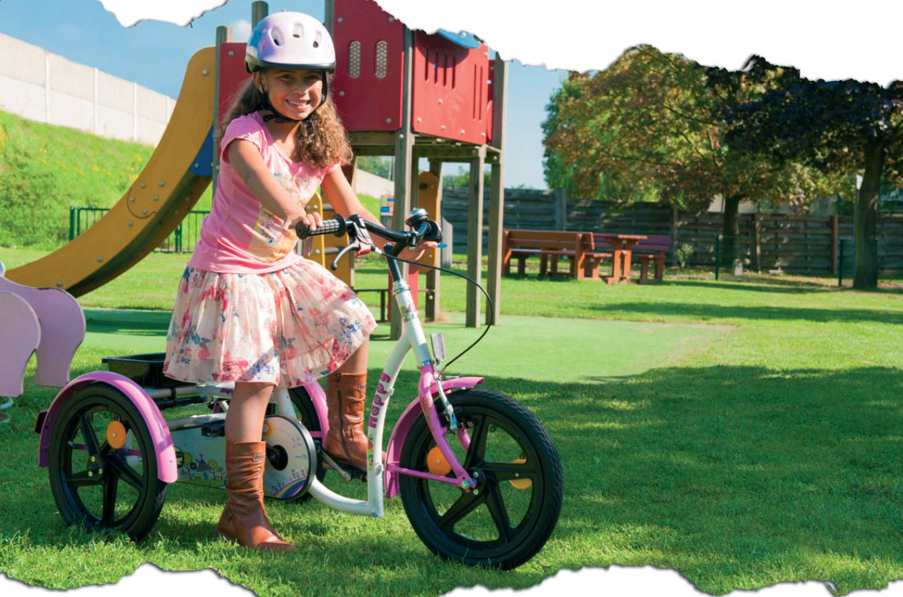 Велосипед специально адаптирован для детей с колеблющимся чувством равновесия, двигательными нарушениями. Езда на велосипеде стимулирует поддержание мышечного скелета в хорошем состоянии, нормализует кровообращение и дыхательную функцию, укрепляет тело.