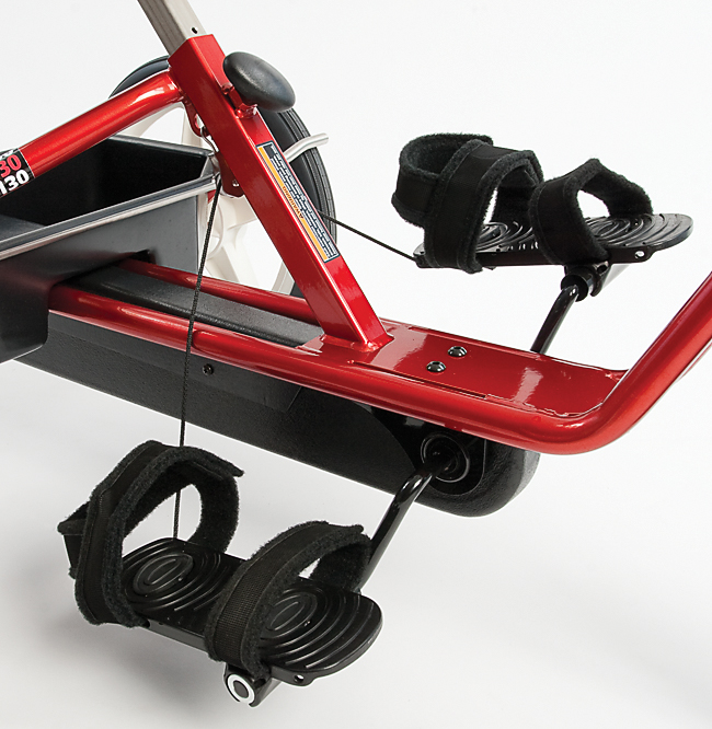 Специальные ремешки держат ноги на педалях там, где это нужно. Низкое передаточное колесо позволяет легко крутить педали даже новичкам и не позволяет быстро разгоняться.